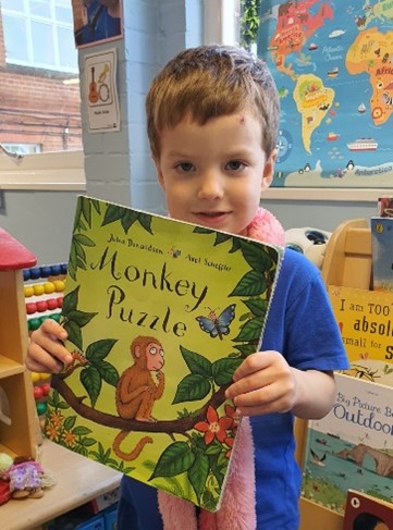 Our book this week was Monkey Puzzle by Julia Donaldson. We have been reading it to the children during snacktime and they really seem to have enjoyed the gentle atmosphere this has created. Our focus has been on the rhyming element of the story and they have been doing so well beginning to spot and suggest rhyming words.